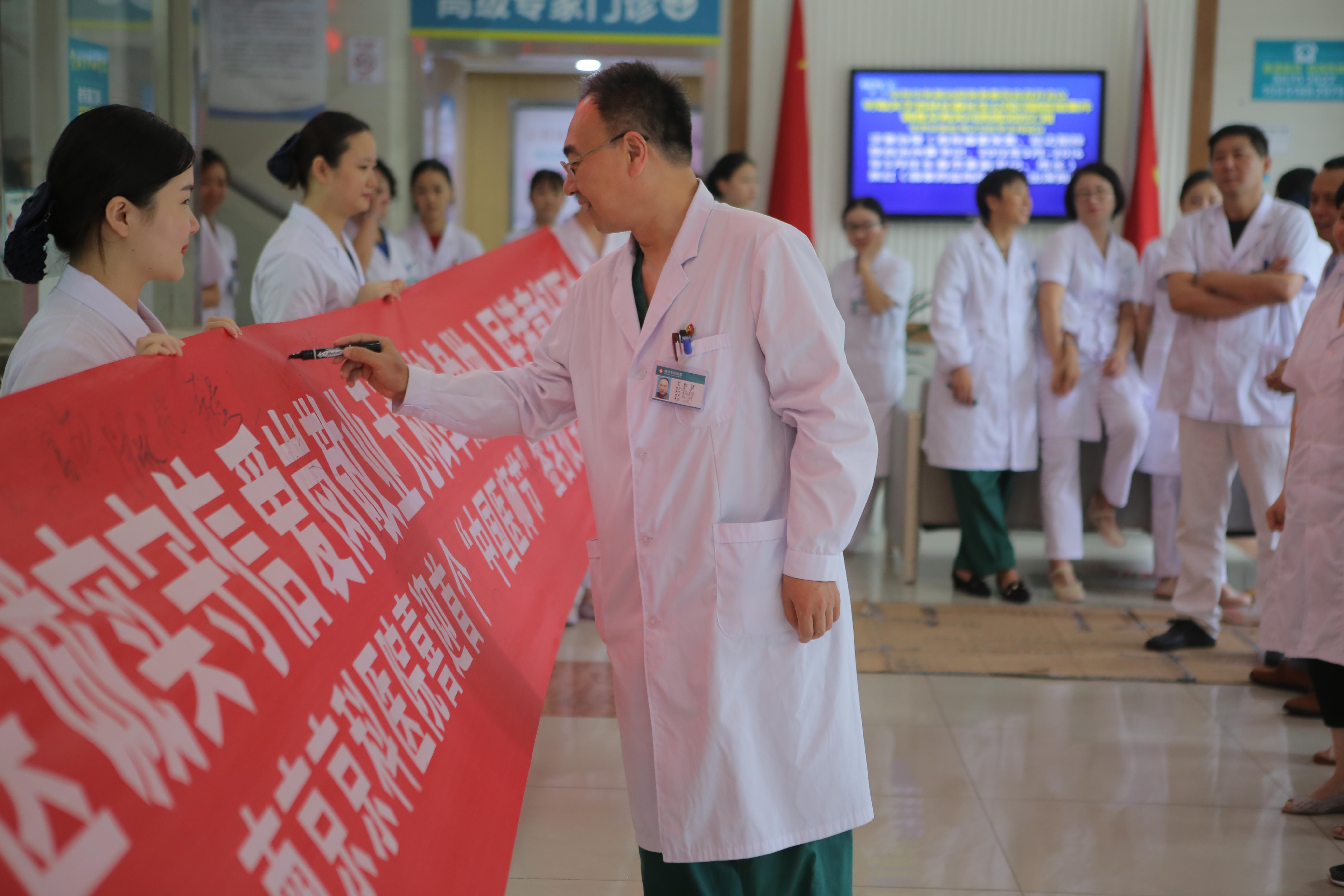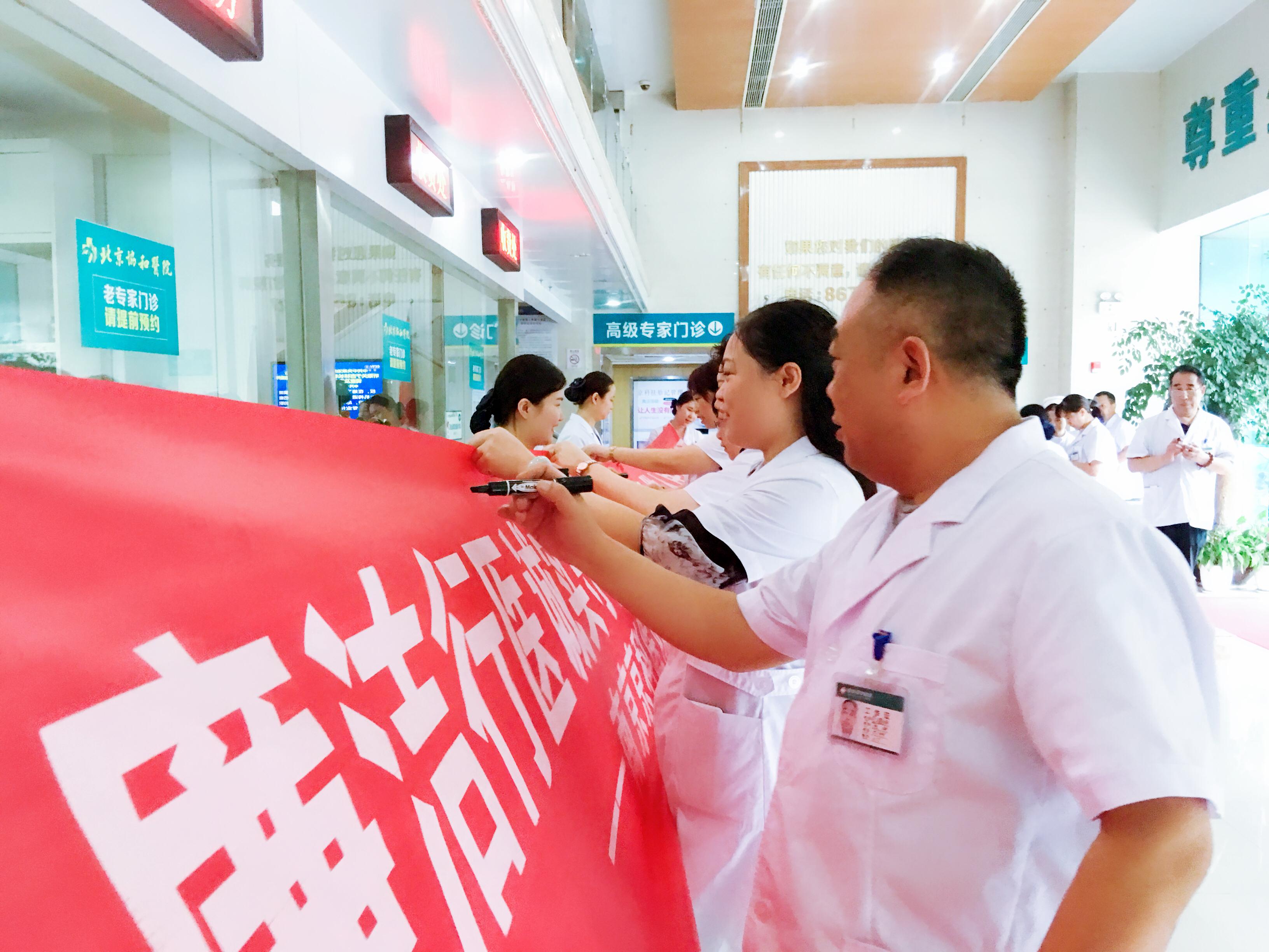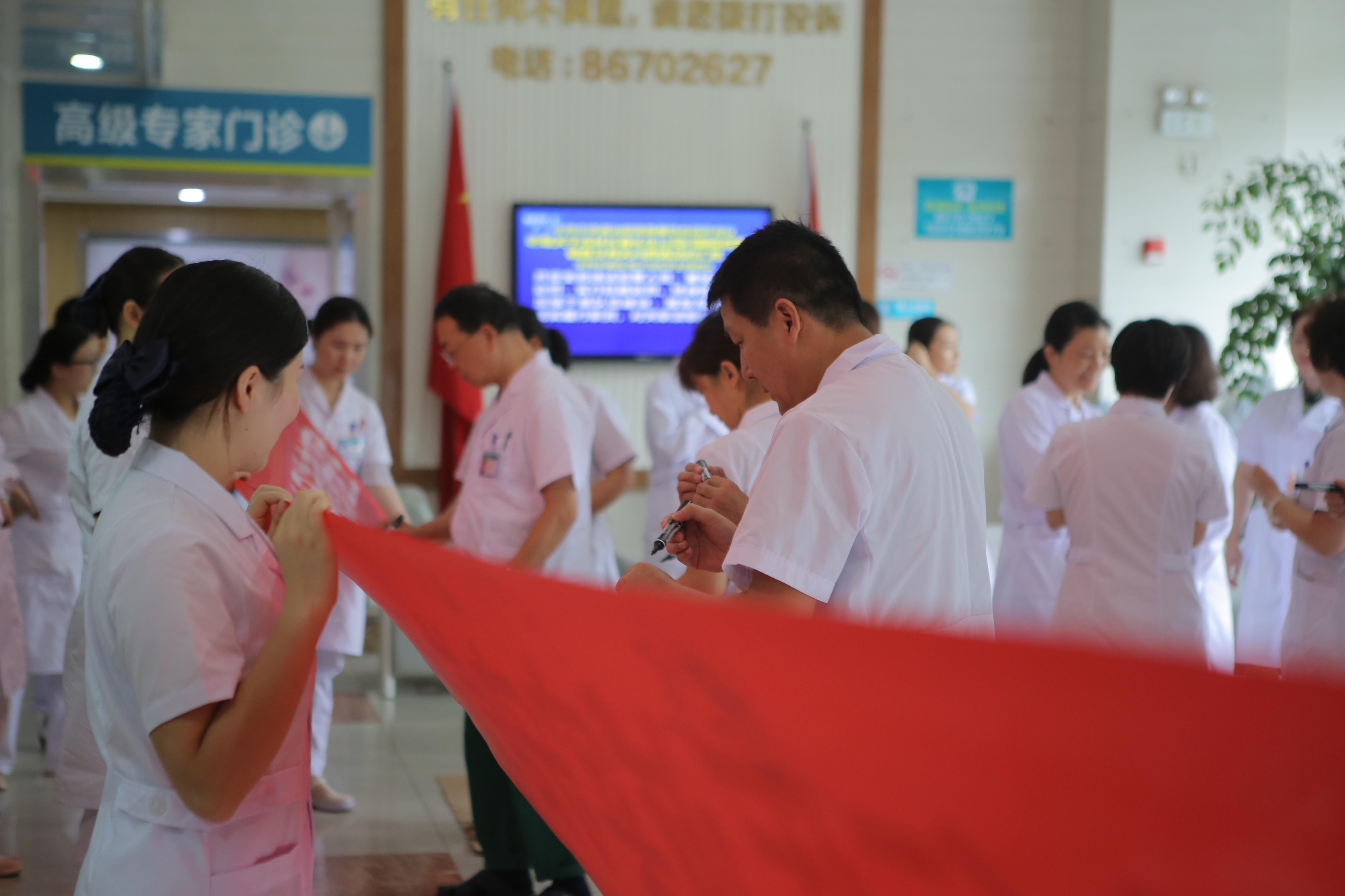 经国务院批准,自2018年起,将每年8月19日设立为%26ldquo;中国医师节%26rdquo;,中国的全体医师终于有了自己的%26ldquo;节日%26rdquo;。为庆祝首届%26ldquo;中国医师节%26rdquo;,展示广大医师爱岗敬业、无私奉献、服务为民的职业精神,培育不忘初心、学赶先进、廉洁行医的行业气质,8月17日上午,南京妇儿堂医院举行庆祝首届%26ldquo;中国医师节%26rdquo;签名宣誓活动,医院陈院长、党支部许书记、各科室医师代表等人参加了本次活动。